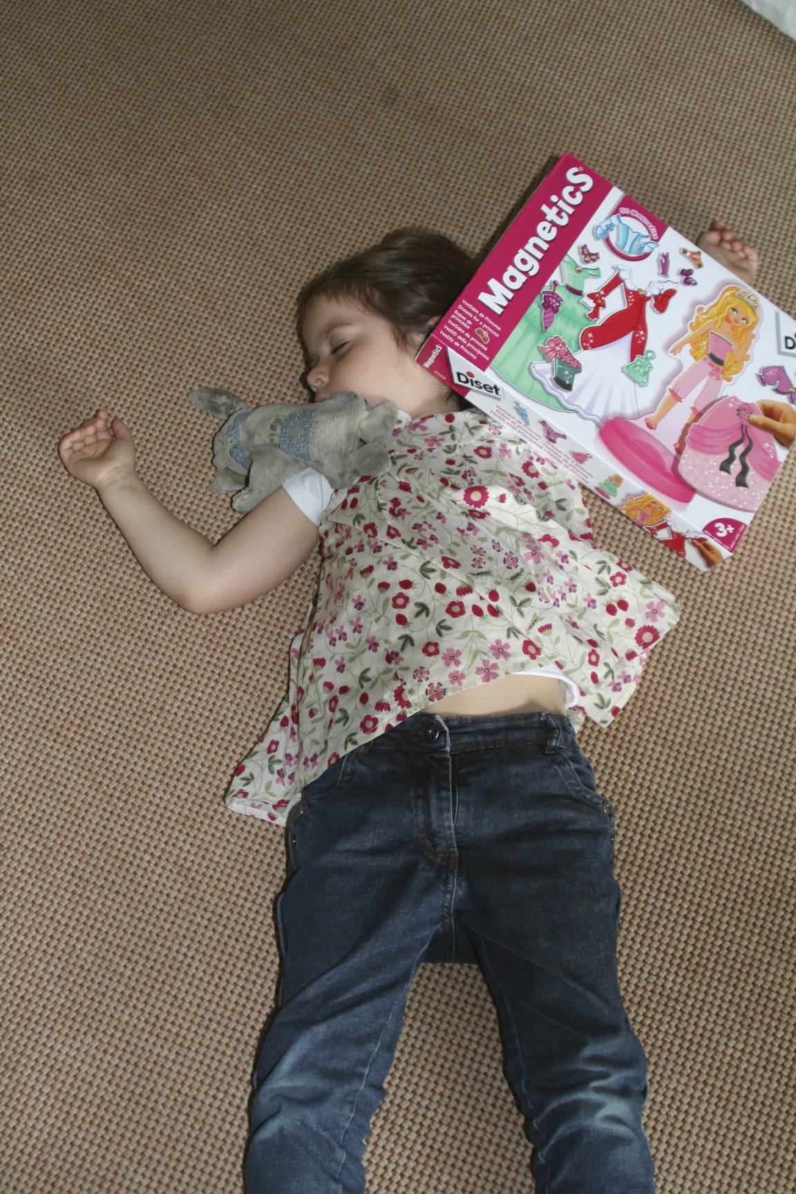 Je vous parlais hier de l’importance du sommeil chez nous. La preuve, il n’y a pas d’heure pour se requinquer, tous les endroits sont bons… mais jamais sans doudou !