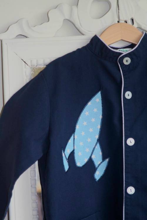 Un petit garçon fan de son étoile sur son pyjama cet été… et un tablier un peu trop triste à son goût. La commande est passée et livrée : une jolie fusée remplie d’étoiles. Te voilà prêt, Hector, à décoller pour l’école ! Dis, tu me raconteras ton voyage ?