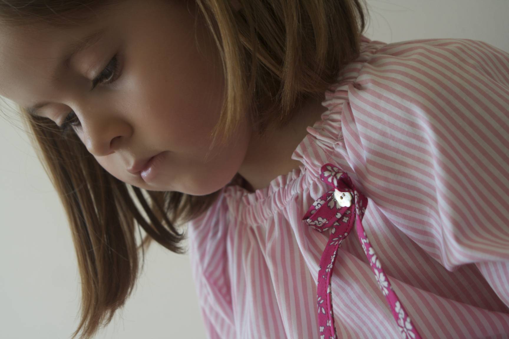 Pour étoffer la garde robe estivale, euh non, automnale (je m’y perds !) de Mlle Méli-Mélo, une tunique L tirée du livre IV (classement japan couture addict) avec l’encolure du modèle N et un noeud en biais Liberty capel pour assouvir une forte envie de rose.
