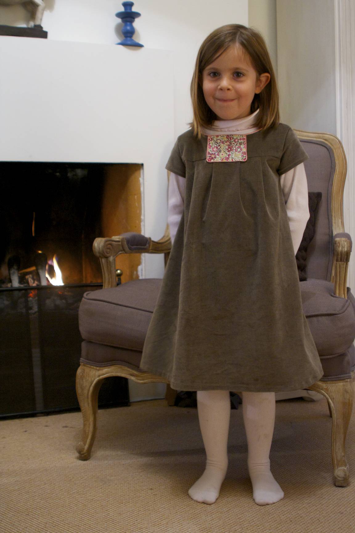 Encouragée par mes premières bidouilles « maison » en matière de modélisme, voilà mon premier patron 100% maison. Un plastron en liberty, un peu de passepoil, quelques plis : des petits détails glanés ici ou là. Je me suis vraiment régalée à penser cette robe, la construire, la coudre. Et je crois que le résultat plaît autant à la maman qu’à la fille. La tête pleine de nouvelles idées… Aïe, aïe, aïe, le temps me manque !