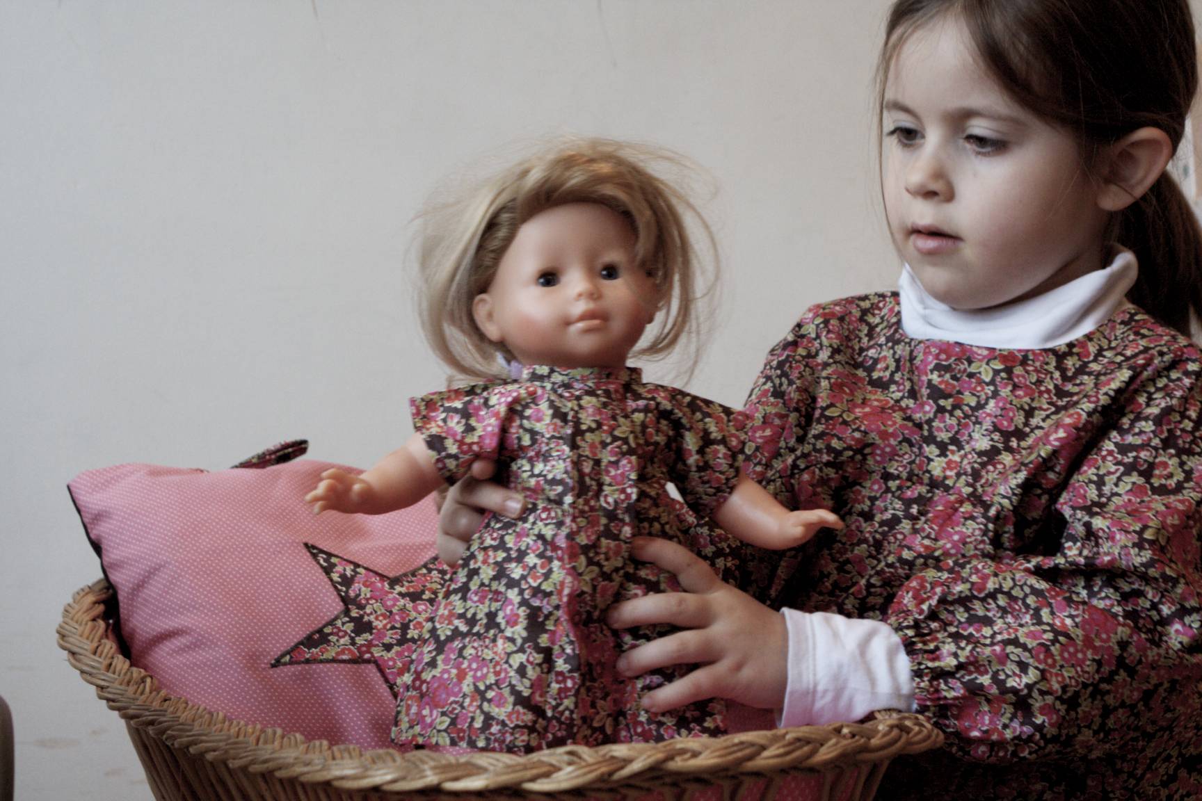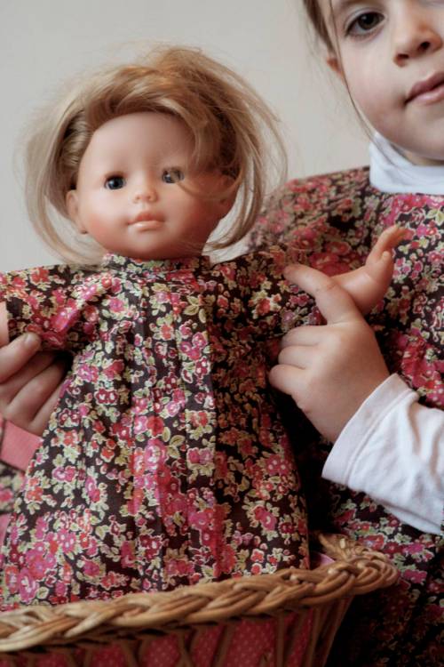 Et voilà une des associations proposées : tunique Besty pour Miss Méli-Mélo et sa poupée, en tissu Tatum.
