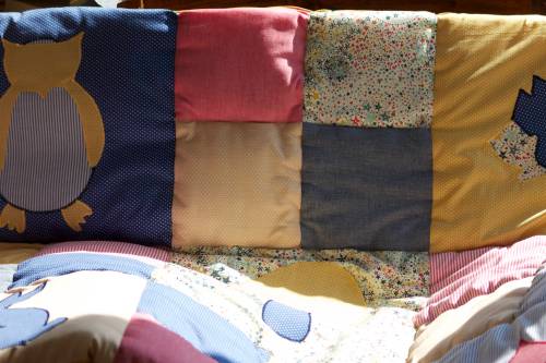 Suite de la découverte du deuxième livre de Mélanie Voituriez (il est temps, le troisième arrive)…. Après le tipi, voilà le tapis d’éveil. Transformé en édredon pour affronter les premiers frimas et décorer le « lit de grand » de Mr Méli-Mélo jr.