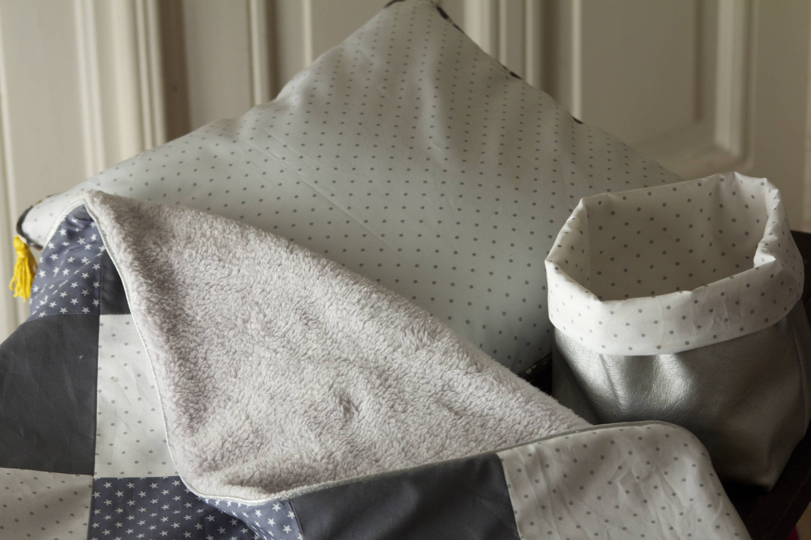 Couverture garçon doublée doudou gris