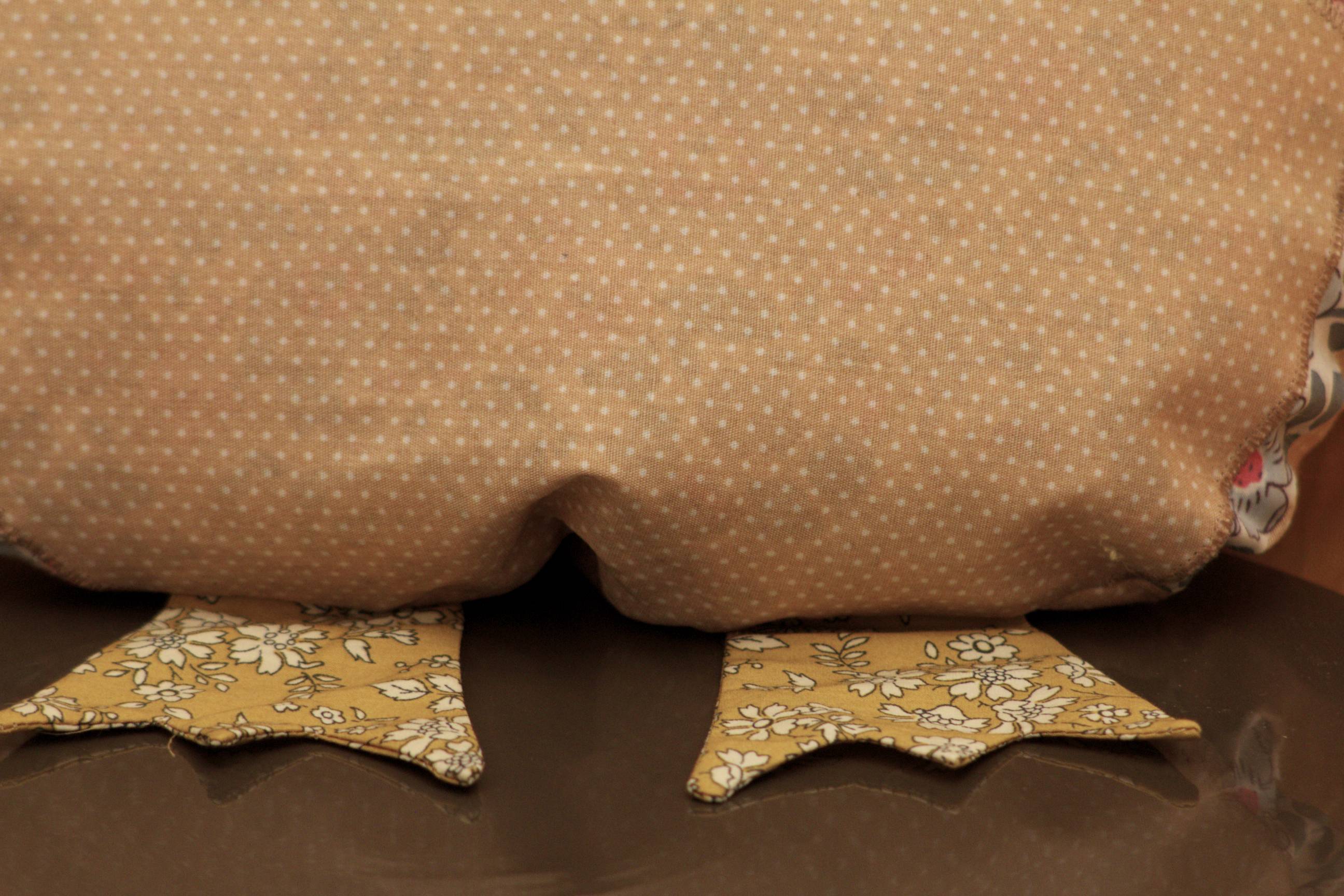 chouette coussin 3Et… le chouette coussin servi sur un plateau (il attendra le printemps pour se percher sur son arbre…) :