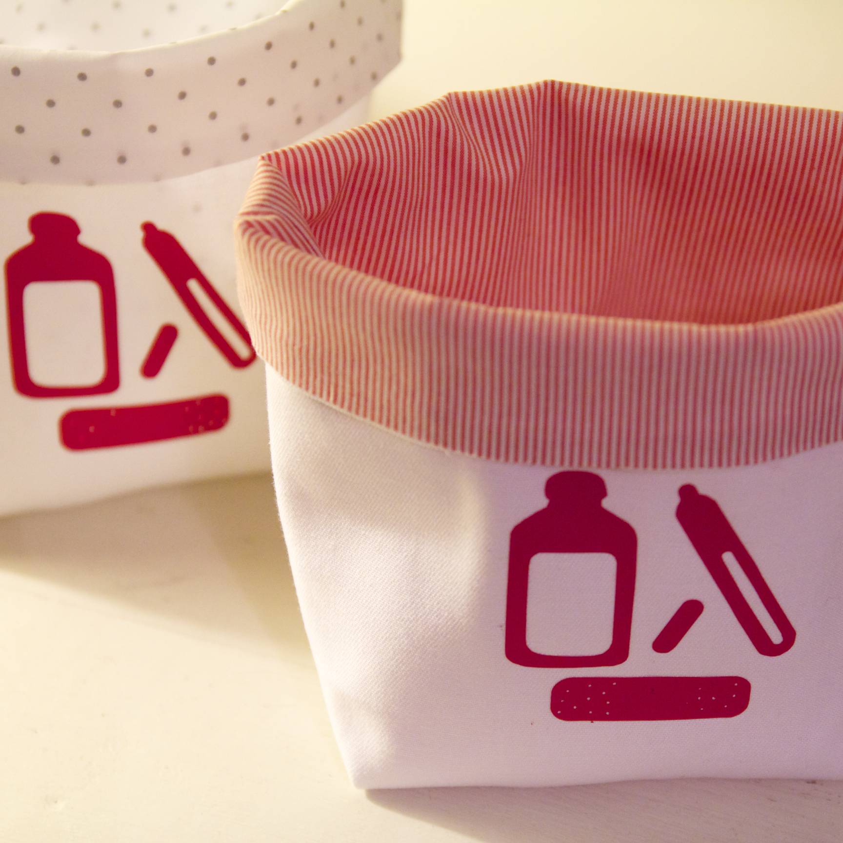 tissu rayé rouge de mon stock et thermocollants « trousse de secours », rouge.