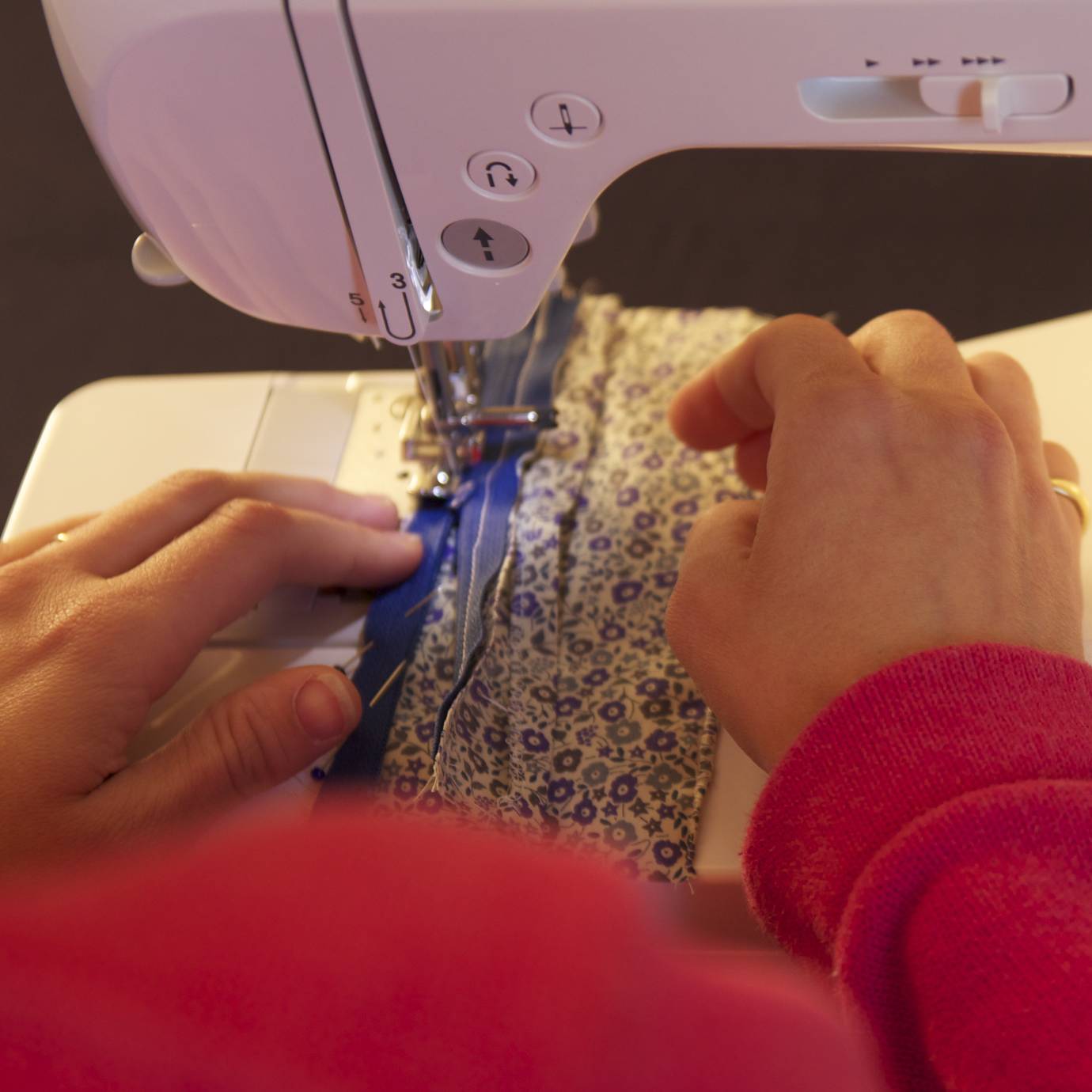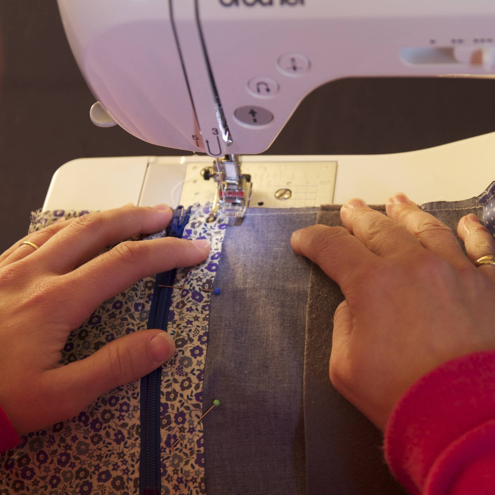 Piquer tout le long à l’aide du pied de biche « fermeture éclair ». Ne pas hésiter à déplacer le curseur de la fermeture éclair s’il gêne.