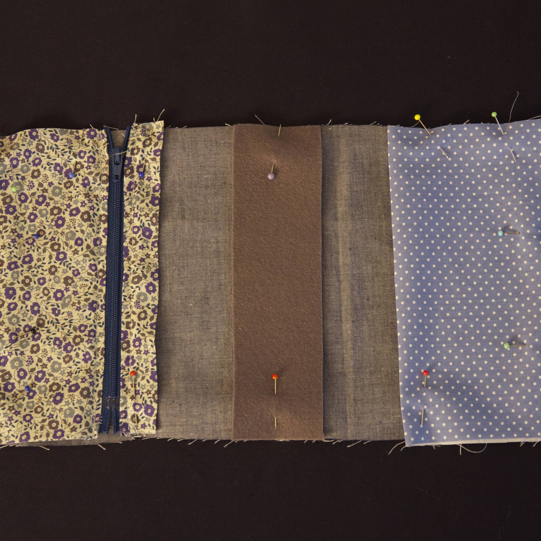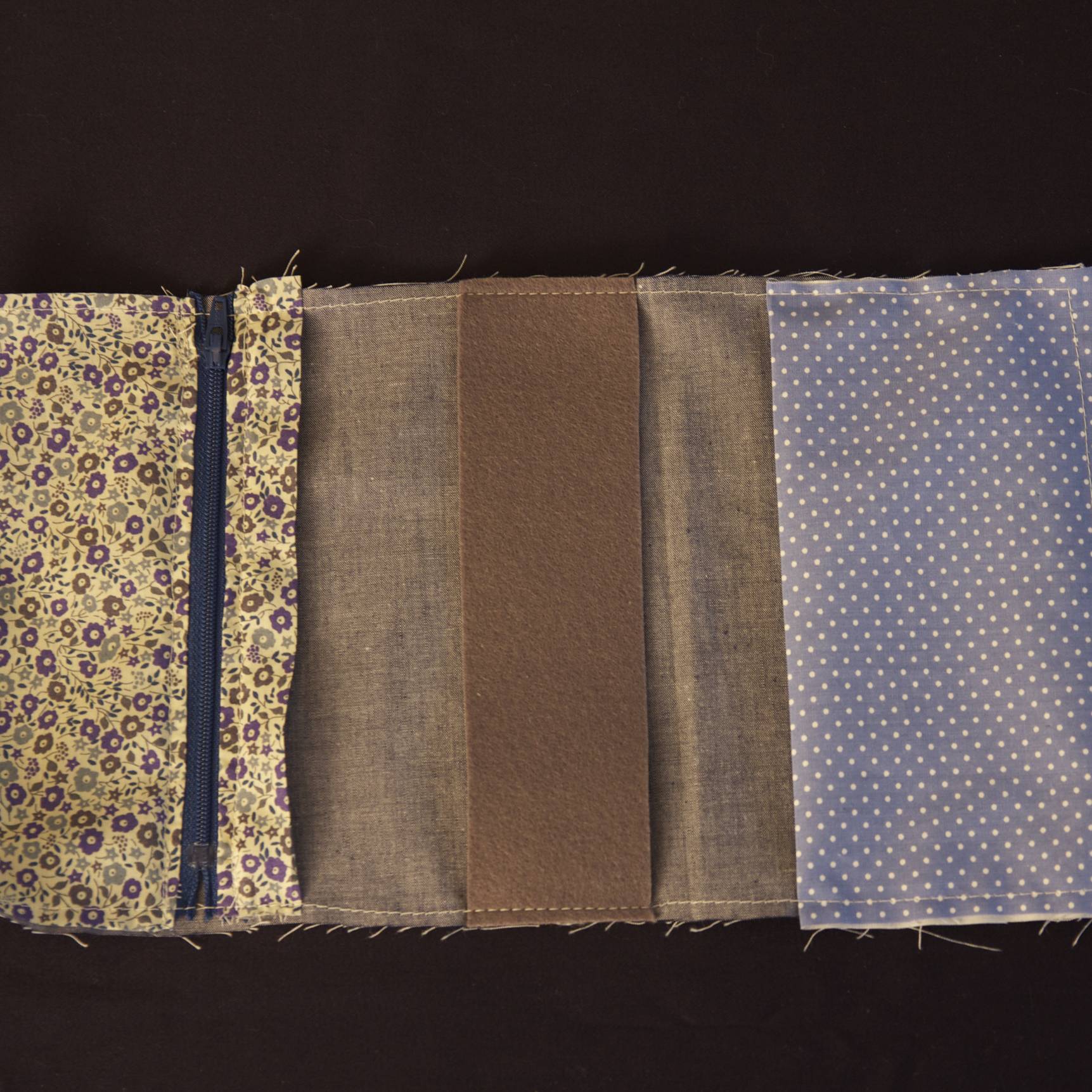 Surfiler toutes les longueurs des rectangles nécessaires à la pochette zippée (tissu 1).