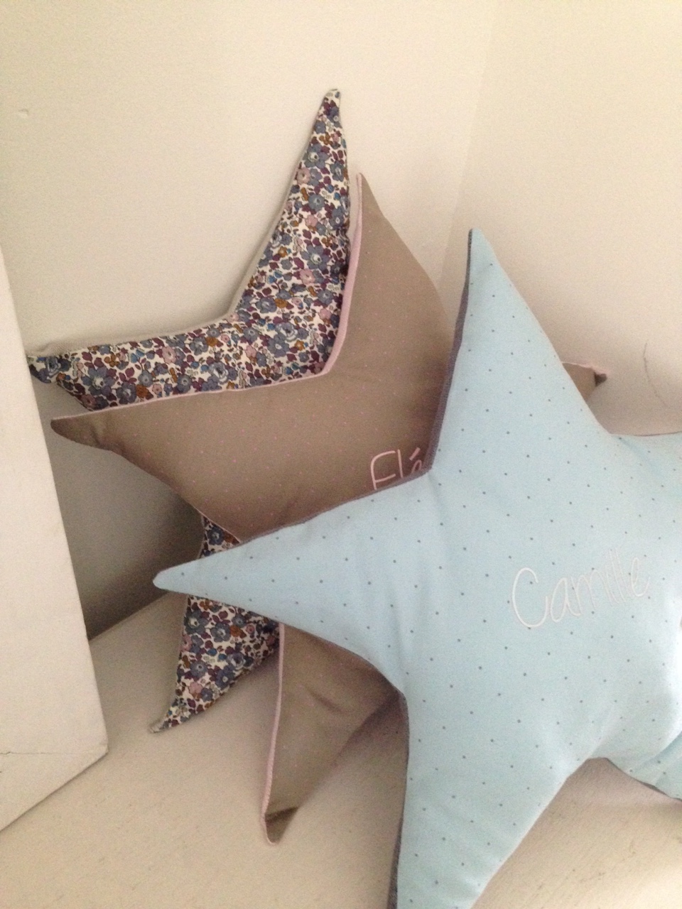1. Ce doit être tout doux un coussin en lange ! Et si je ne me trompe les jolis pois viennent de chez Citronille ??
