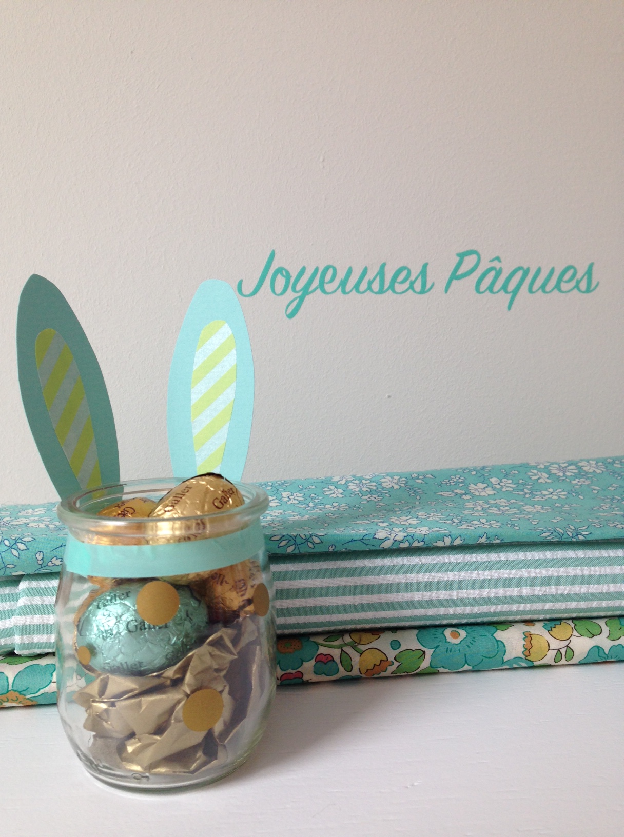 Masking-tape, gommettes, papier de soie, pots de yaourts (merci Elise ;-))