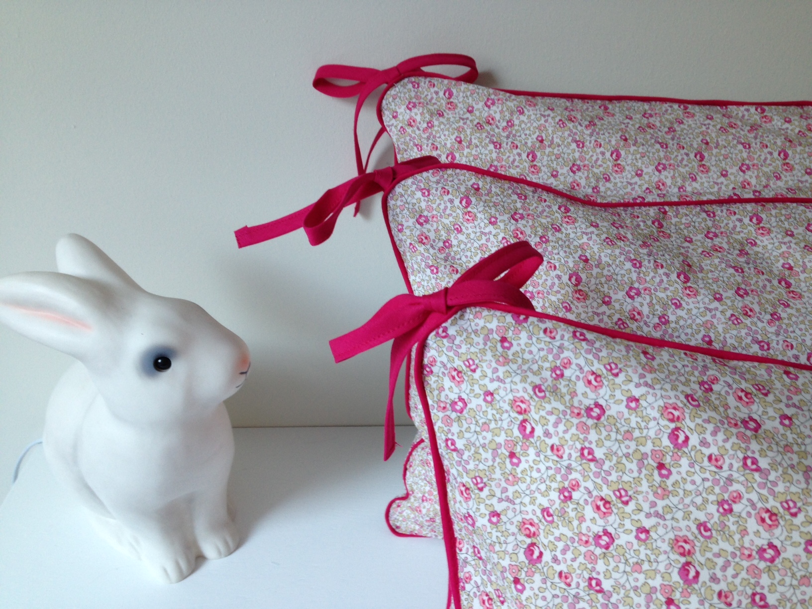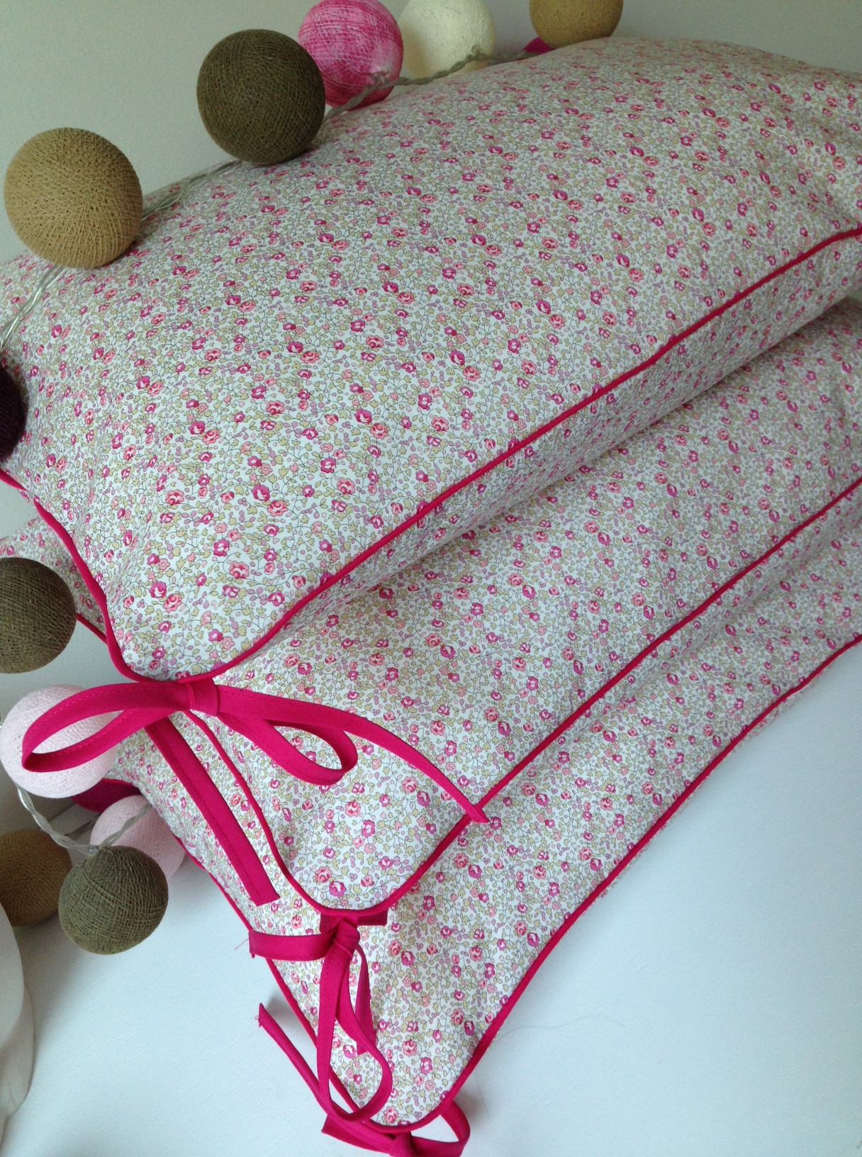 Tour de lit liberty Eloïse, 3 coussins de 40x60cm passepoilés