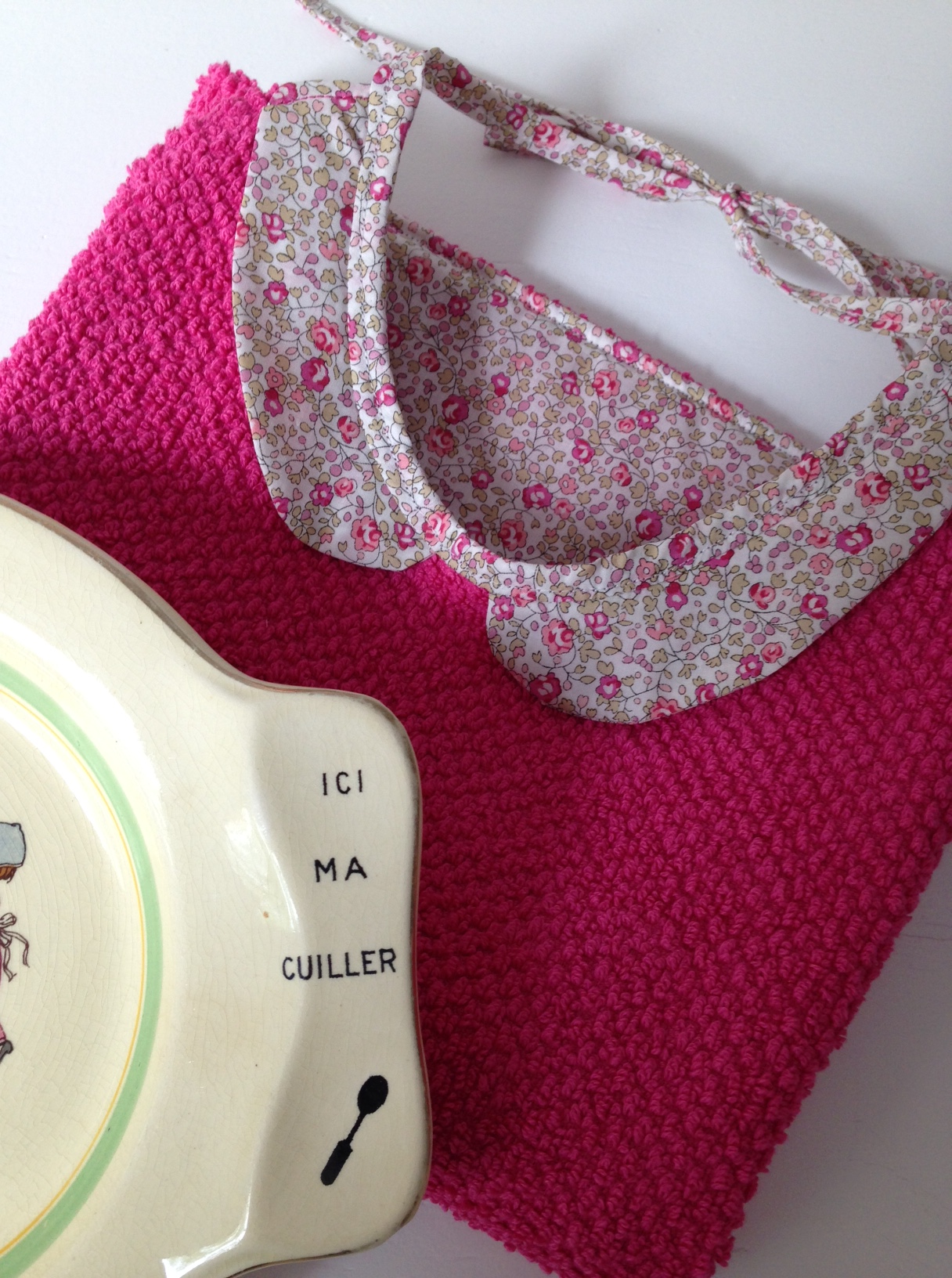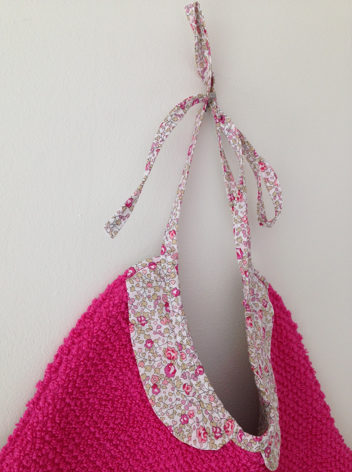 Bavoir éponge géant, doublé de liberty, patron maison, étudié pour couvrir la quasi-totalité du « devant » !!