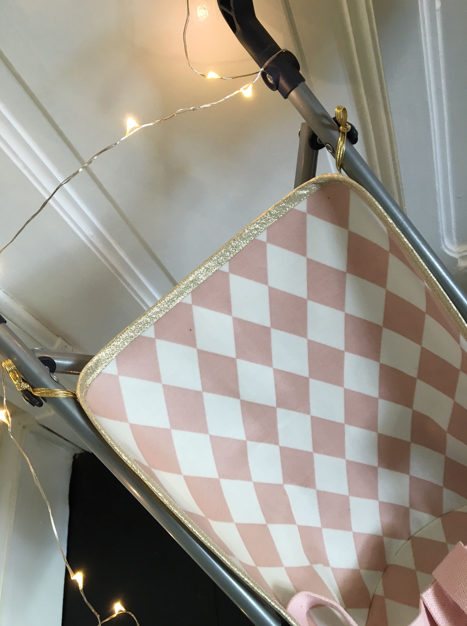 Poussette poupée losanges roses