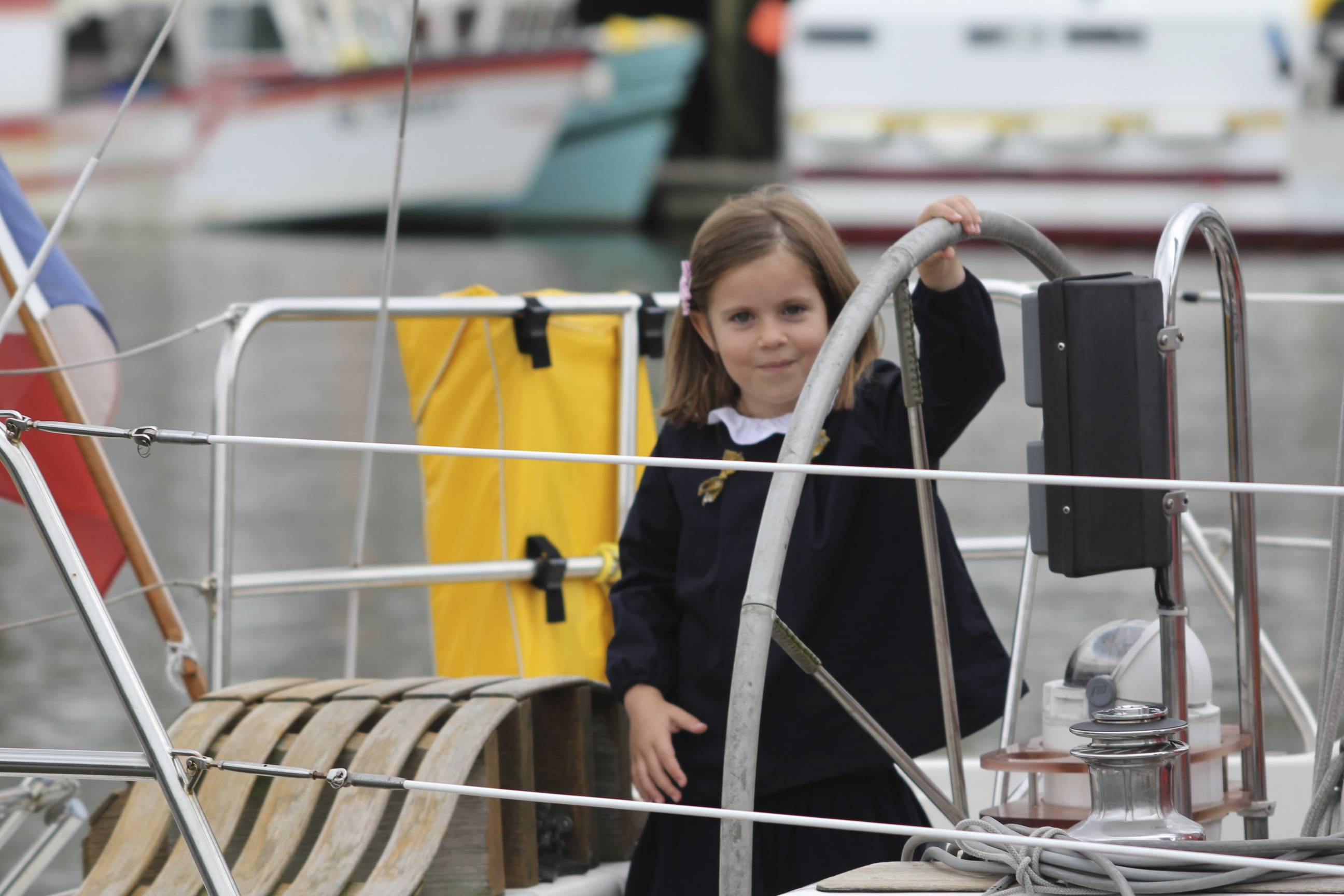 On passe des jupes d’été à l’uniforme bleu marine. Sans transition, ou presque. Le dernier week-end de vacances a permis de rester loin, très loin de la rentrée jusqu’au bout. Juste quelques minutes de sérieux (sans exagérer) pour essayer l’uniforme – bleu marine obligatoire, jean interdit… Difficile de faire plus strict. J’ai ajouté deux noeuds en liberty capel pour faire un peu plus rock’n roll, dans les limites du règlement (enfin, j’espère!). Bref, c’est le retour !!!!