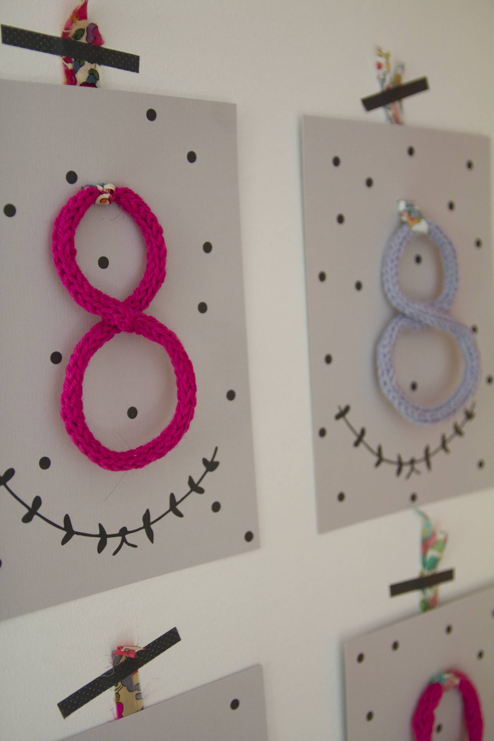 Côté déco, quelques cartes (merci Brigitte !) et une jolie guirlande offerte par les filles du café couture (merci, merci, encore pour ce cadeau à 12 mains)