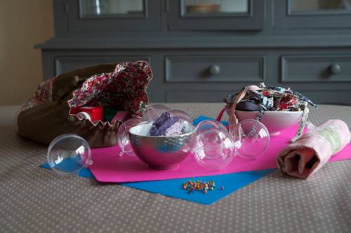 Au programme : préparation des invitations pour l’anniversaire avec les copines. Boule en plexiglas, petites attaches parisiennes de couleur, emporte-pièces, quelques papillons, etc. et bien sûr, un peu de liberty…