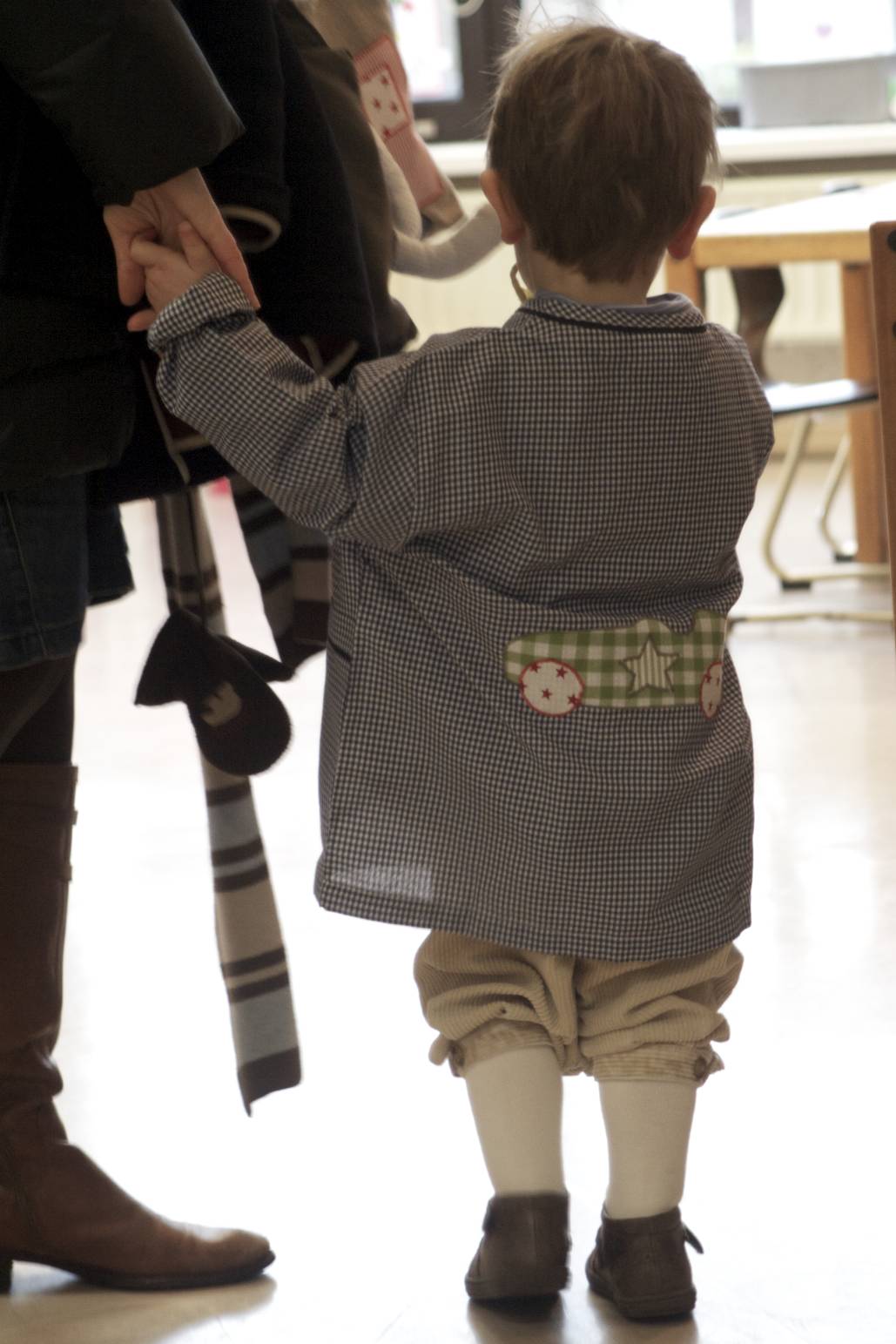 On enchaine : après la propreté, l’école. Avec quelques jours de retard, pour cause de fièvre, c’est parti pour la rentrée des classes, possible, en Belgique, le jour même des deux ans et demi. En tablier vichy customisé avec bolide vert en tissu, l’humeur était joyeuse avant de partir, timide en arrivant, quelques larmes pendant la journée à cause d’un gros ballon vert apparemment effrayant, mais rien de bien grave. Monsieur Méli-Mélo Jr s’est envolé pour sa longue carrière d’écolier. Les apprentissages de base arrivés à une vitesse étonnante…
