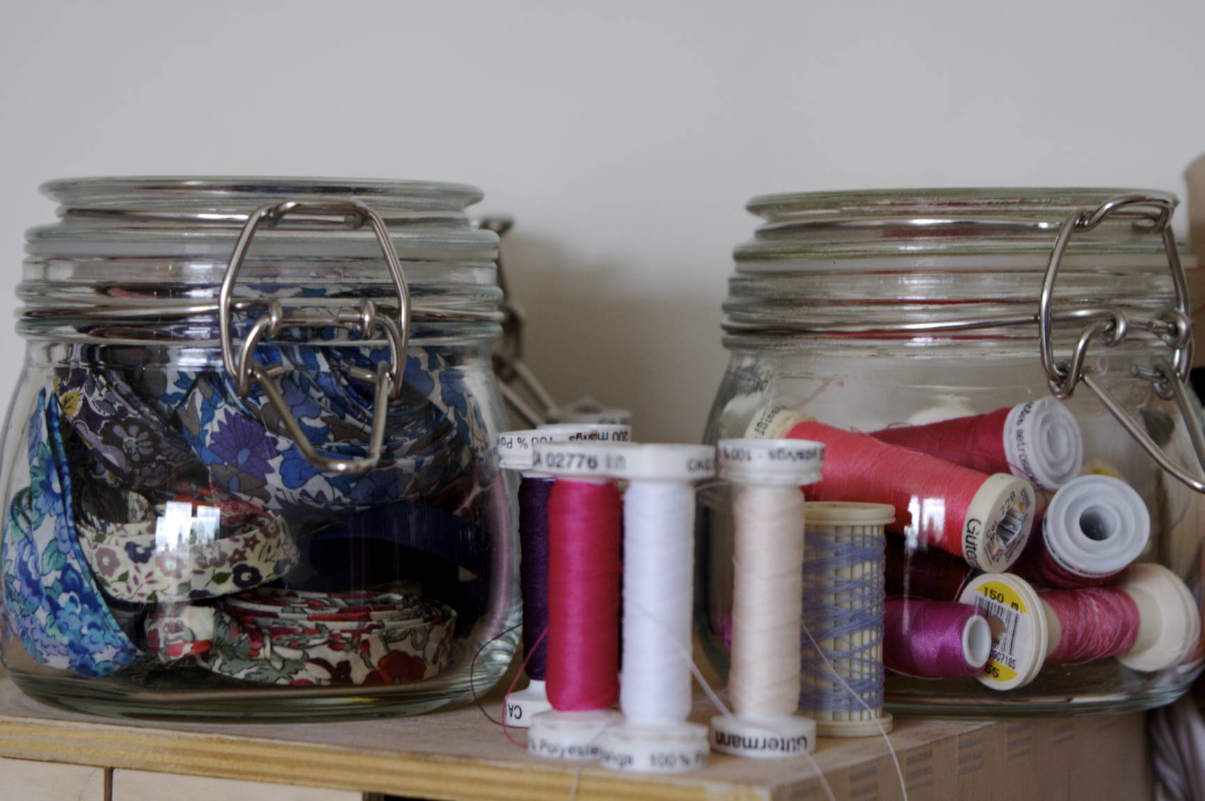 Et oui, qui dit vente, dit boulot, boulot, boulot…. Alors des fils, des bouts de tissus, des aiguilles, des biais liberty un peu partout dans la maison. Et bientôt, mes productions en avant-première.