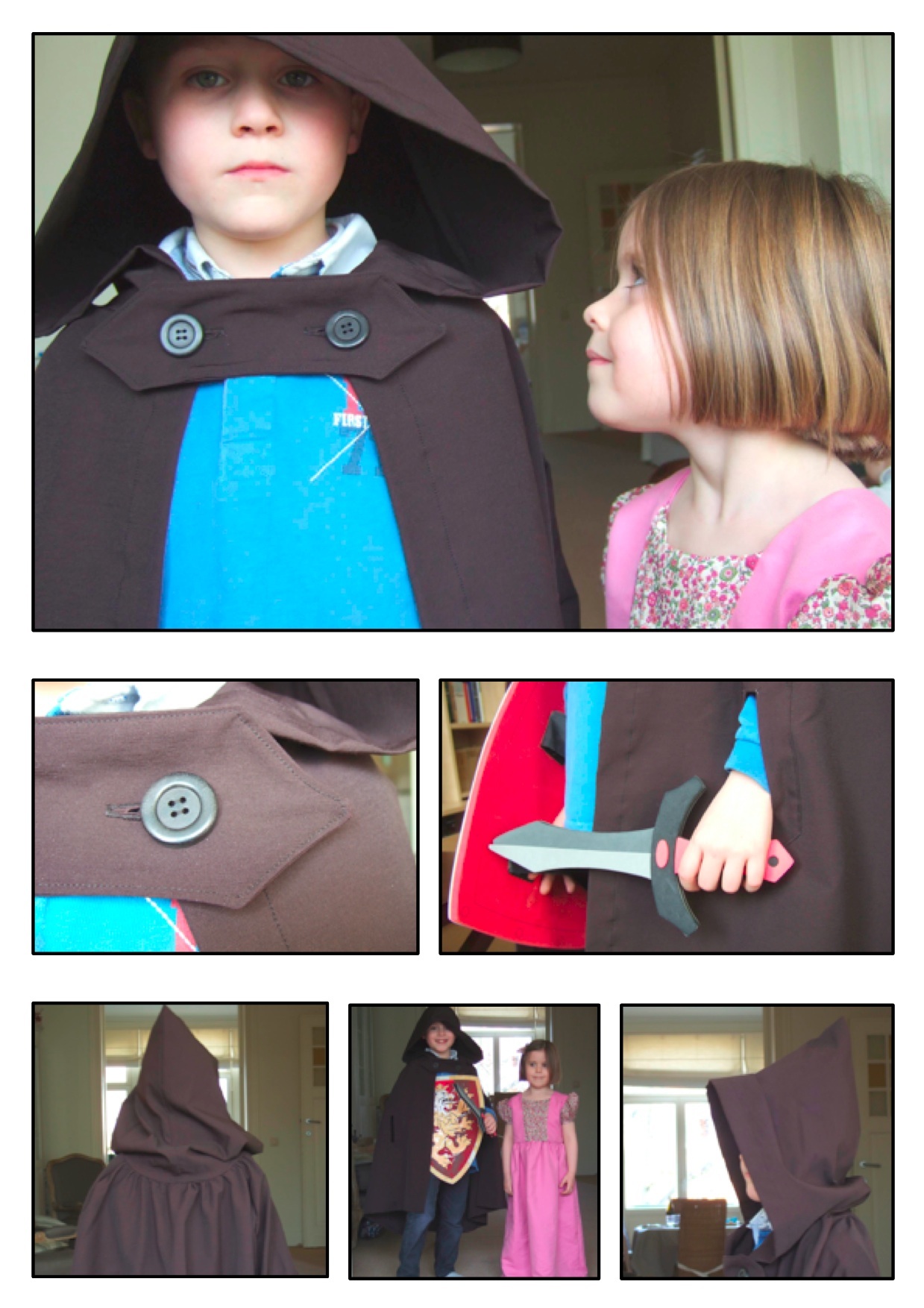 Pour livrer bataille et délivrer un château assiégé ou pour affronter un autre chevalier lors d’un tournoi, il faudra être brave et courageux. Et pour tenir tous ces rôles, une vraie cape de chevalier sera nécessaire ! Et qui sait, peut-être qu’elle pourra aider aussi le jeune chevalier à conquérir le coeur d’une dame parée de ses plus beaux habits….