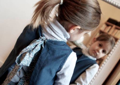 C’est reparti pour les conduites à l’école. Finies les vacances de Méli-Mélo. Moi aussi j’ai ressorti cahiers, livres et crayons pour préparer des habits disons plus… printaniers ! Il faut dire que la pluie, le vent et le souvenir du grand ciel bleu des montagnes, cela donne envie de penser aux beaux jours. Ils vont bien finir par arriver.