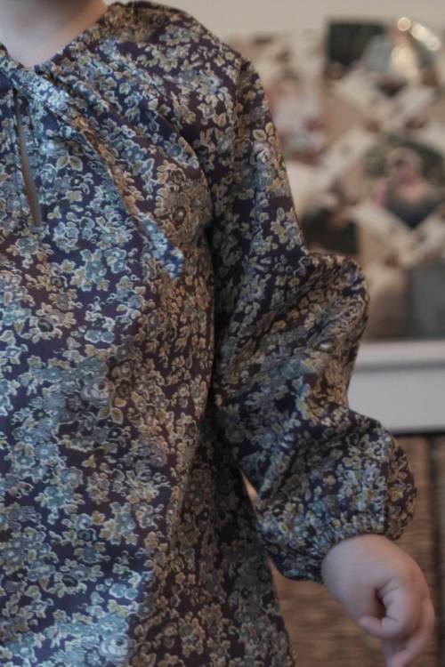 Ta ta ta ta… ta ta ta tum ! Ce superbe tissu Tatum m’a donné l’envie de coudre une nouvelle tunique 100% Liberty. Toute simple, juste un noeud discret pour fermer l’encolure, je vais la prendre sous le bras pour la prochaine association inédite avec tromimine.com (mode, vêtements et accessoires pour poupée). L’idée sera très simple : coordonner les demoiselles avec leur poupée. Ce modèle ne fait pas partie de la série que nous sommes entrain de mettre au point. Un peu de patience !